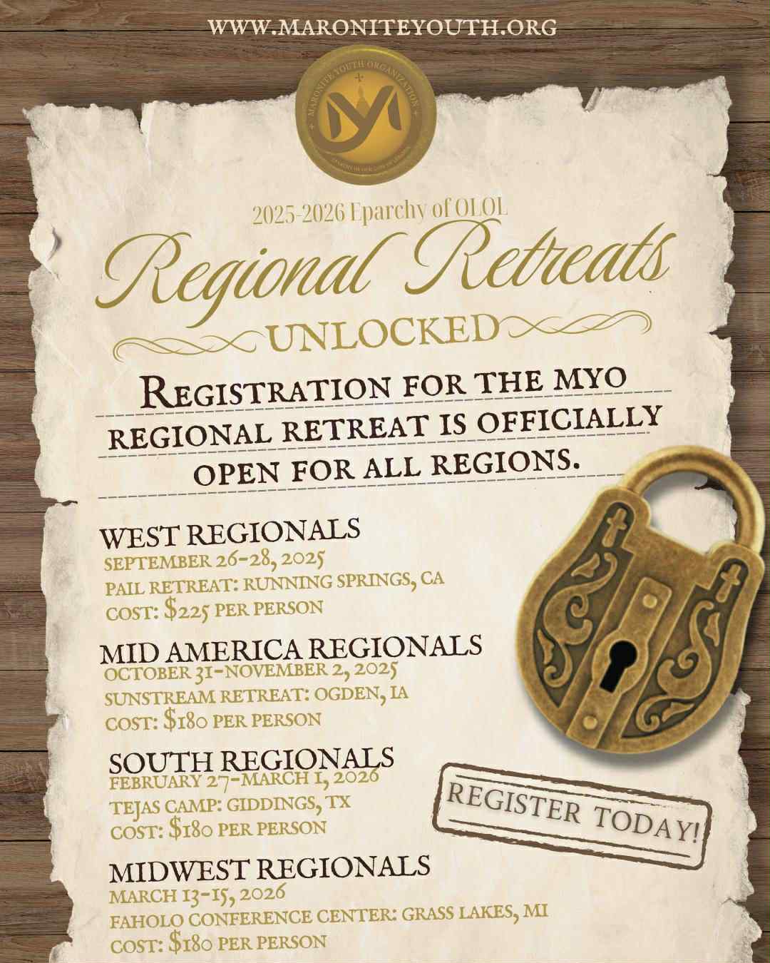 The Maronite Youth Organization (MYO), founded by the National Apostolate of Maronites (NAM) in the 1960s, is dedicated to uniting Maronite youth within their local parishes and across different regions and states. Our vibrant community welcomes young people ages 12 to 18, guiding them to follow Jesus Christ, grow in holiness and joy, and live out their faith deeply rooted in the Maronite Eastern Catholic tradition.